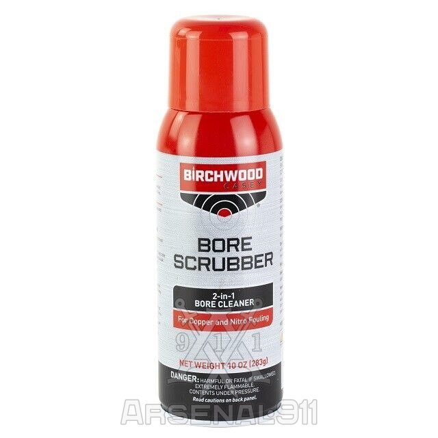 - Очиститель Birchwood BORE SCRUBBER® 2-В-1 разтворяет и удаляет все виды загрязнений ствола, включая свинцовые, медные, пластиковые, углеродные и пороховые.