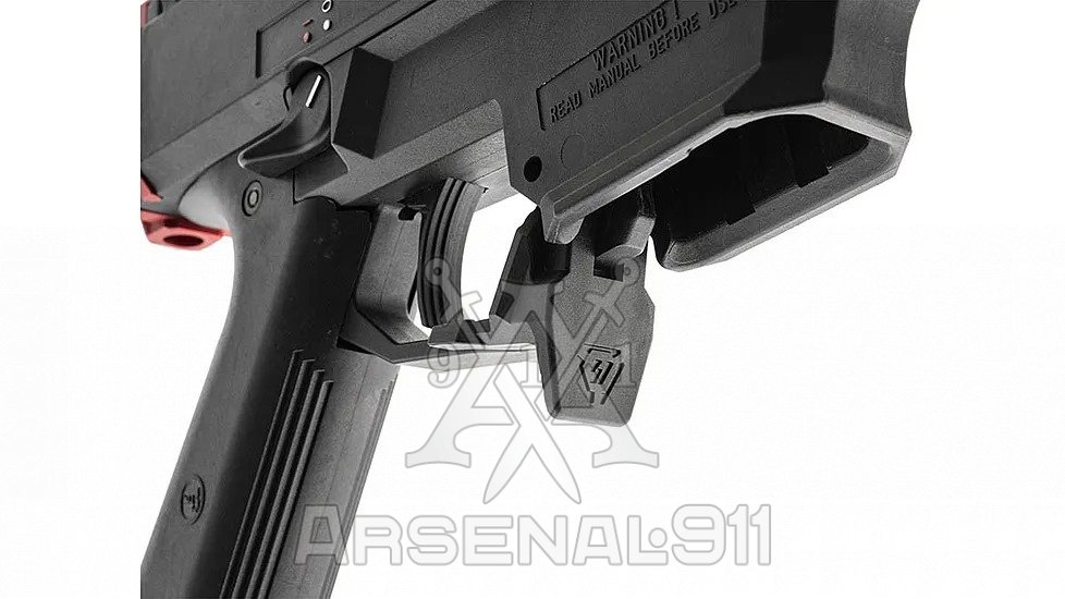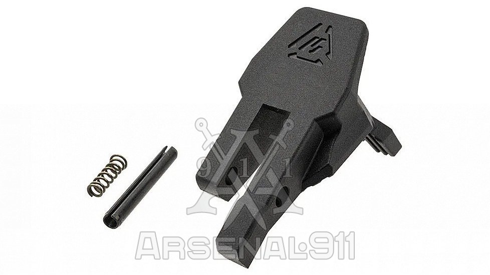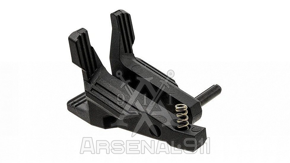 Описание: Это легкая, прочная модификация штатной кнопки сброса магазина, которая позволяет выполнять сброс одной рукой. За счёт удлинённых «ребер» по бокам спусковой скобы стрелок может нажимать кнопку указательным пальцем той же руки, которой держит оружие, что ускоряет процесс перезарядки.