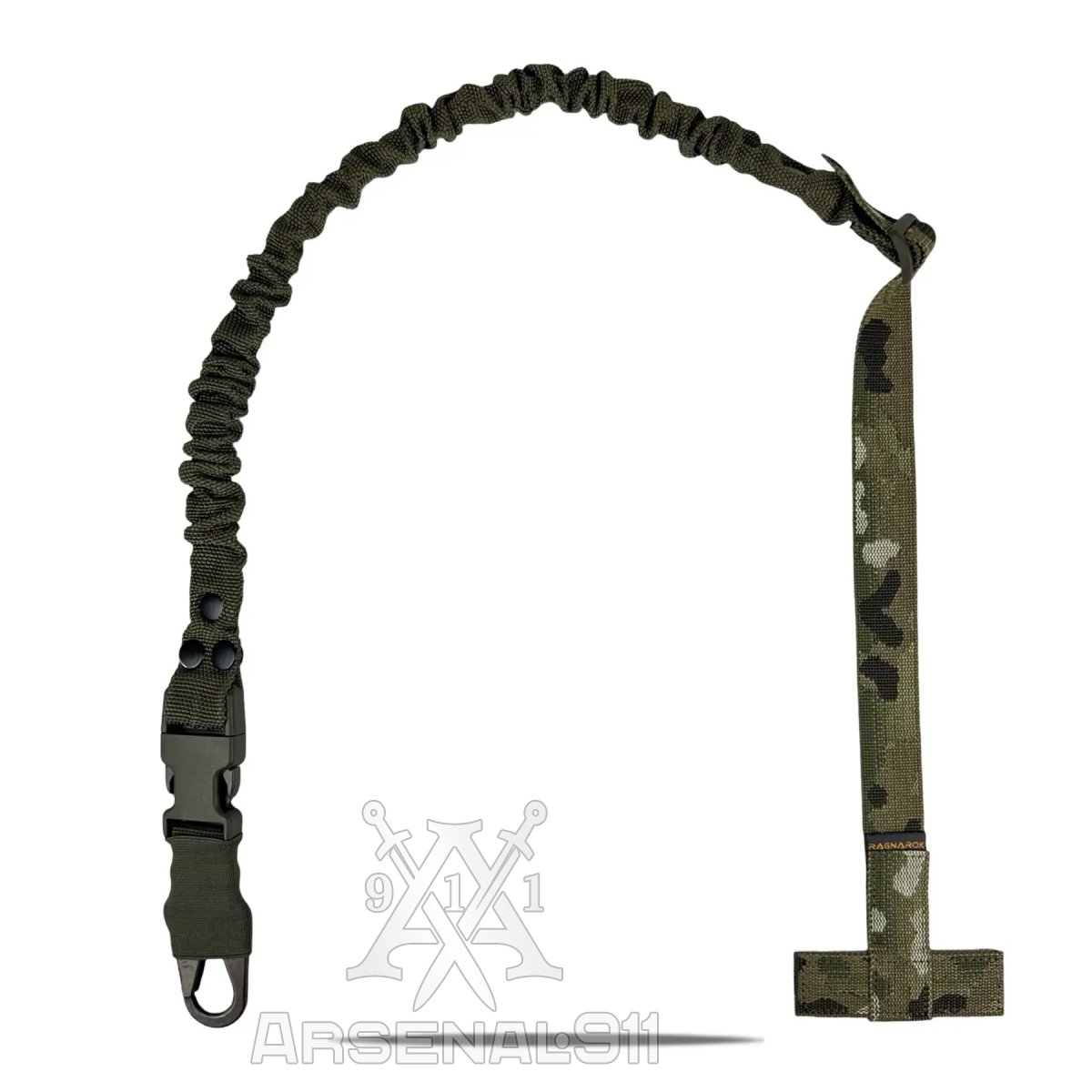 Ремінь Ragnarok THOR виготовлений із поліамідної чулкової стропи та авіаційної плетеної резини. Це повністю регульований одноточковий ремінь для зброї, який кріпиться через Т-подібний хлястик до будь-якого MOLLE-сумісного жилета, нагрудника або броні.