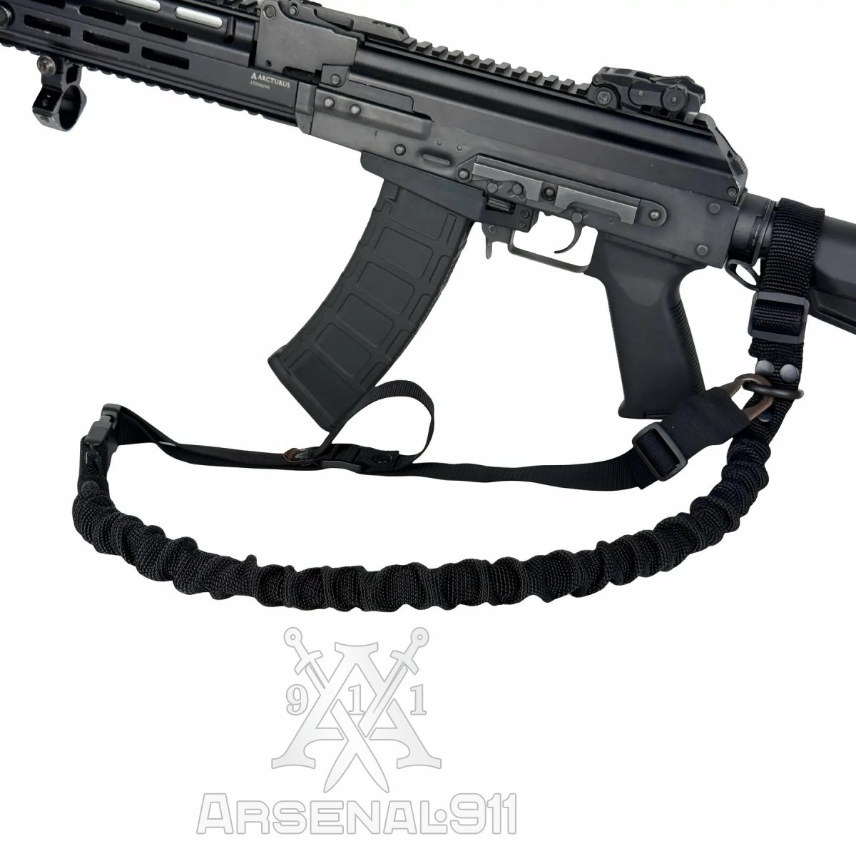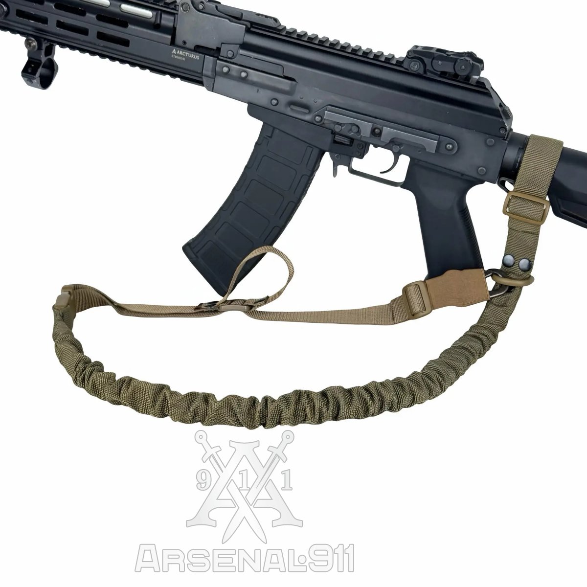 Ремінь збройовий одно/двоточковий з резиновим джгутом замість наплічника є інноваційним та зручним варіантом для переносу зброї. Замість традиційного плечового наплічника, цей ремінь має резиновий джгут в оболонці гофрованої стропи, який може бути еластичним та адаптивним до форми плеча стрільця. Резиновий матеріал може забезпечити комфортне прилягання та зменшити відчуття навантаження на плече. Саме завдяки джгуту вкладання зброї в плече стане більш жорсткіше і зафіксує зброю в момент прицілювання.