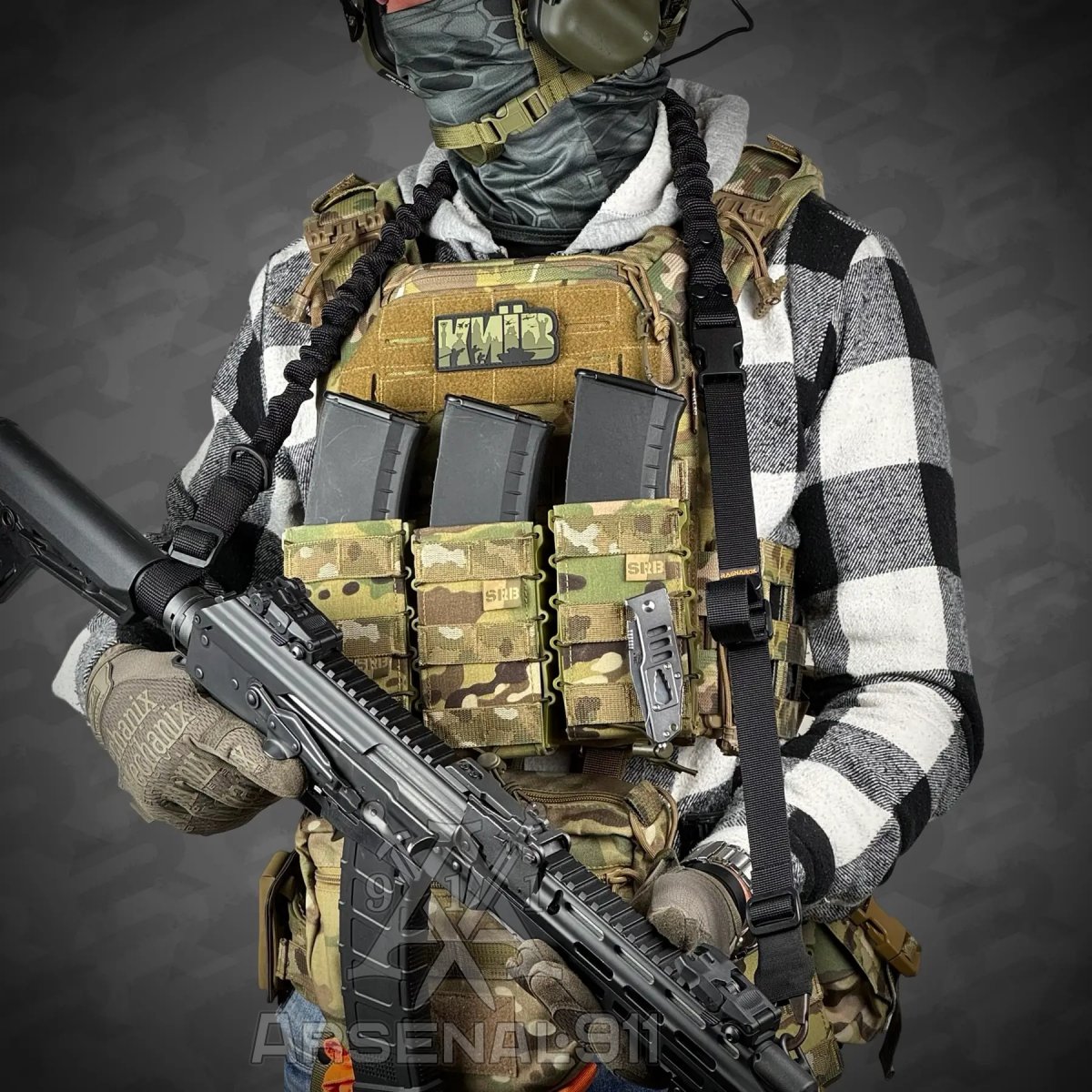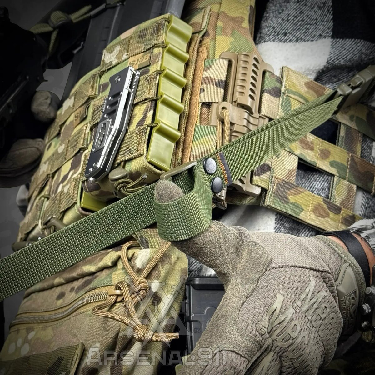 Перш ніж придбати ремінь, важливо врахувати конкретні характеристики вашої зброї та особисті вподобання щодо носіння. Це допоможе забезпечити оптимальну сумісність та зручність використання. Саме ця модель ременя часто використовується для коротких зразків зброї, таких як карабіни чи штурмові гвинтівки. Дві точки кріплення дозволяють рівномірно розподіляти вагу та забезпечують стабільне закріплення короткоствольної зброї. Кріпиться ремінь за передню антабку металевим карабіном типу H&K. А якщо для завдання потрібно зробити кріплення безшумним – просто зніміть карабін і закріпіть ремінь стропою. Задня частина збройового ременя кріпиться стропою за допомогою двохщільової пряжки, її можете закріпити в антабку або за звуження прикладу (шийку).